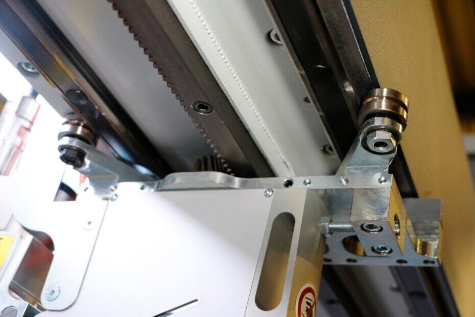 处理硬纸板时,纸板上的灰尘会不断积聚,弄脏导轨。借助V形导轨的外形,可以形成一种除雪效果,当轴承穿过导轨时同时清除了灰尘和碎屑,将污染物推离滑块,因而导轨系统实际上是自清洁的。由于切割工具距离约340毫米,因此实际上导轨系统上的污染极少,这就大大提高了系统的坚固性和耐用性。